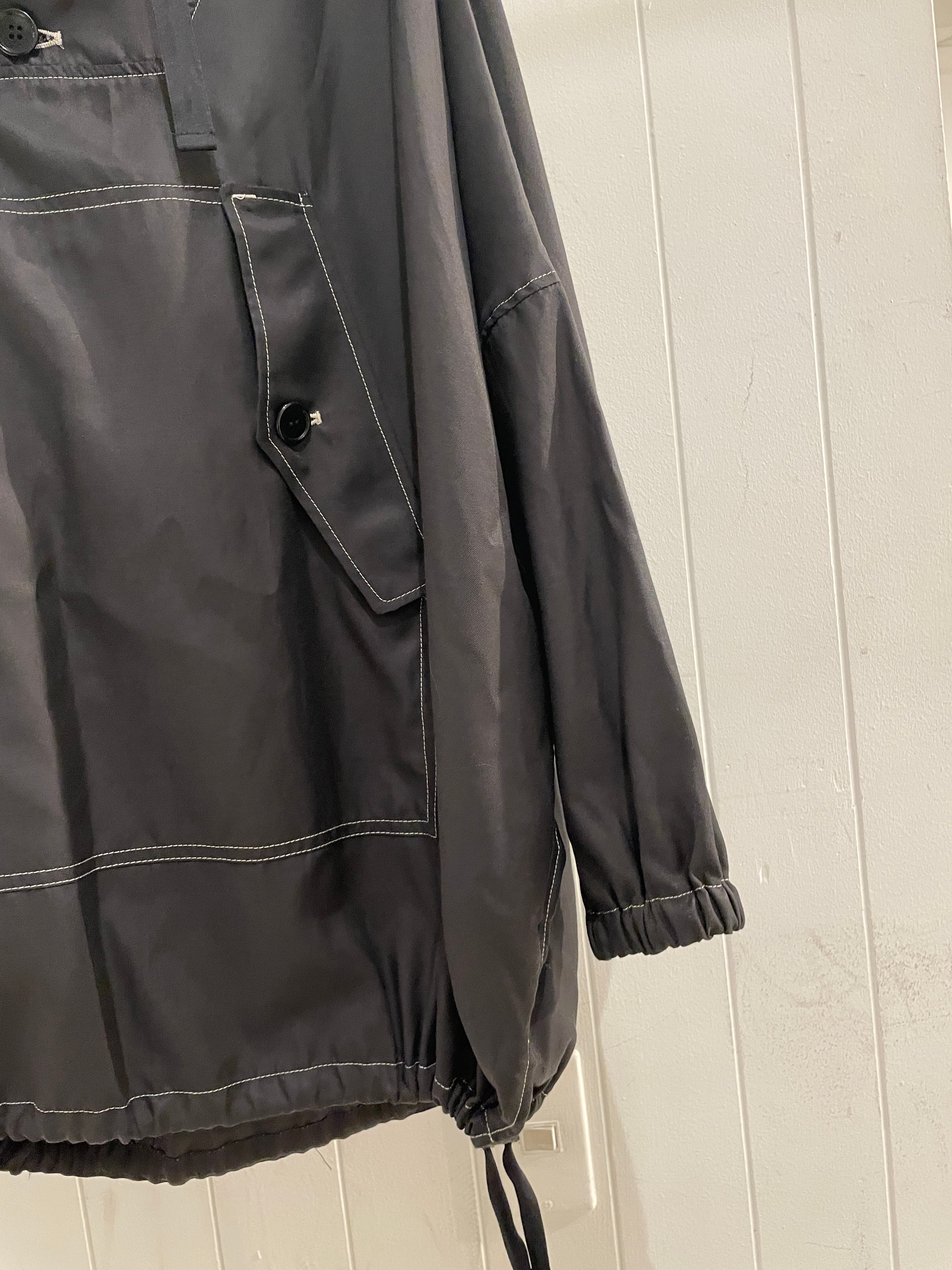 胸の大きなポケットが印象的なフード付きのブルゾンになります。 サイズ感は大人の方でもすっぽり入るほどのワイドシルエットになります。