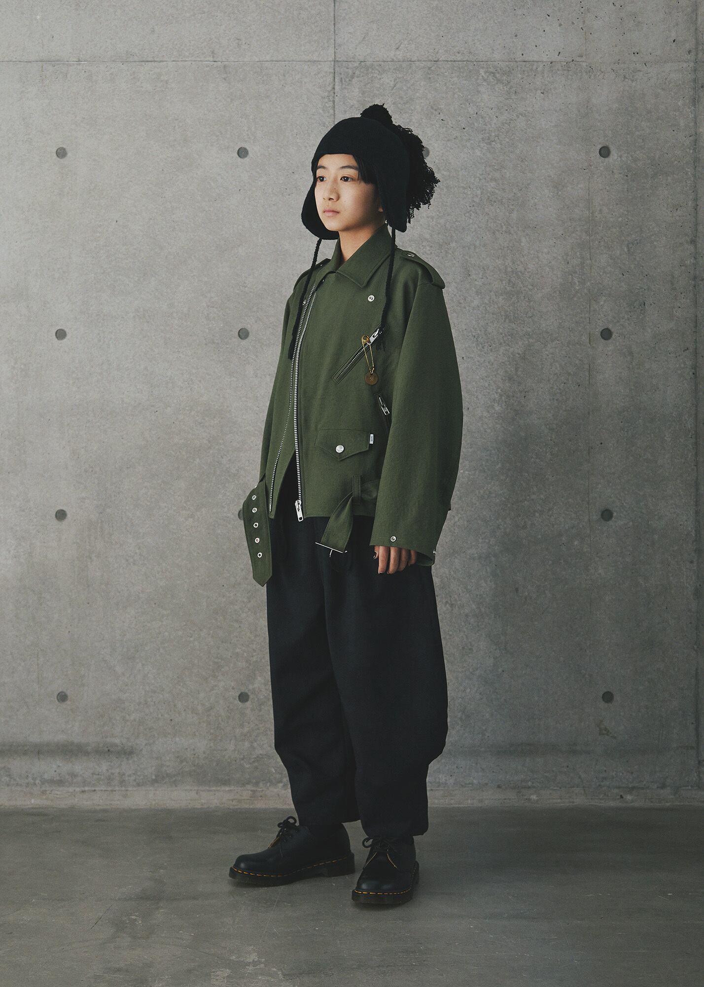 あくまでハードになり過ぎないようにZipを無くし袖口を大きくするなどサイズも含めてバランスのよい仕上がりとなっております。