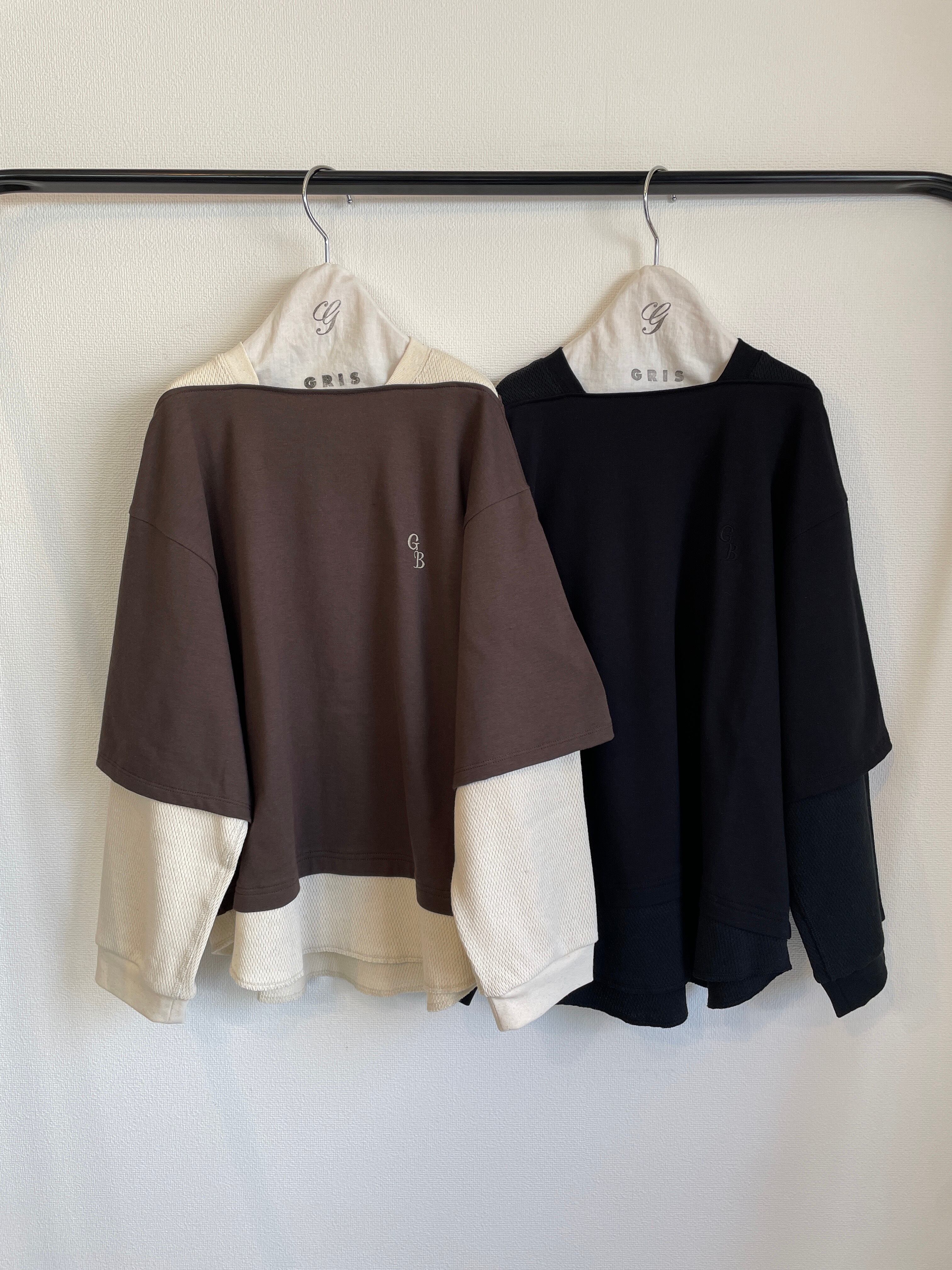 アイテム的にはクルーネックとボートネックをレイヤーさせたようなデザインのロングスリーブのTシャツになります。
