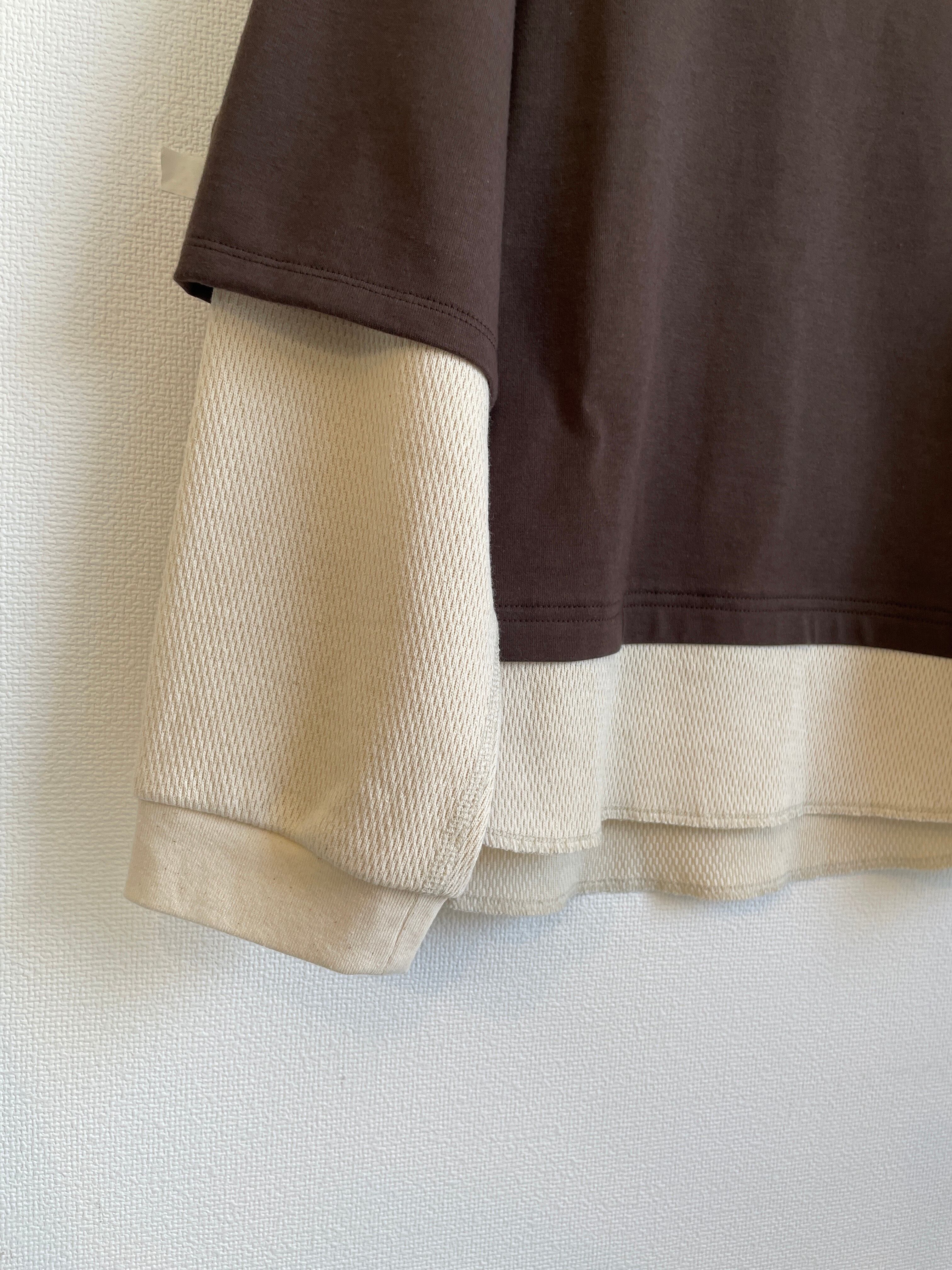 天竺とサーマルで素材を2種類使用し、よりレイヤーしている様に見えるアイテムとなっております。